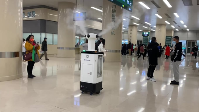 消毒機器人什么場合作用大,大型公共場所使用消毒機器人進行消毒