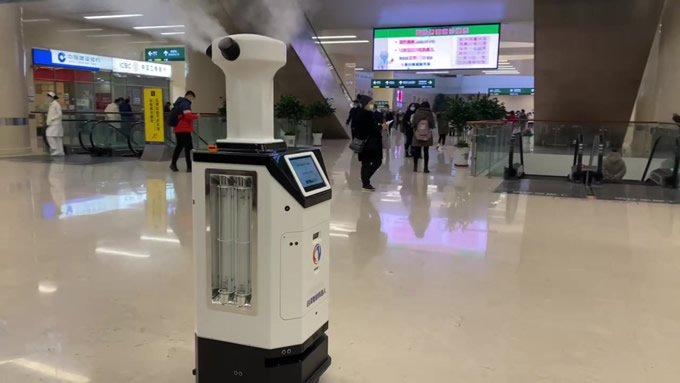 消毒機器人什么場合作用大,大型公共場所使用消毒機器人進行消毒