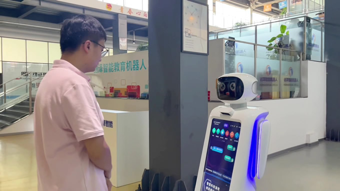 創澤智能消毒機器人和智能大屏機器人等多款機器人亮相蘭洽會,彰顯了創澤AI技術實力與場景深耕能力