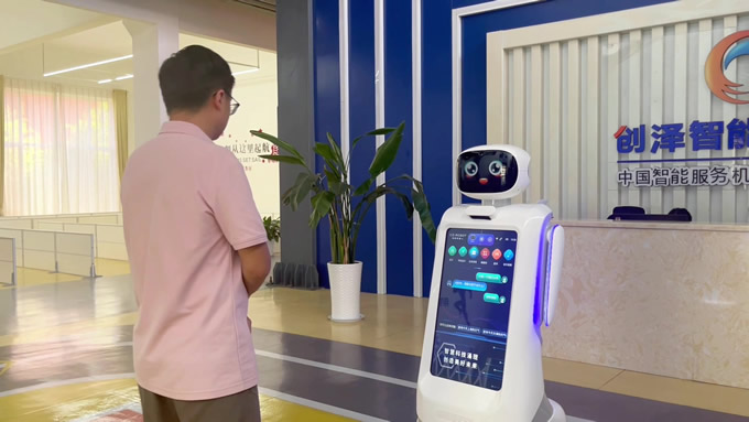 創澤智能消毒機器人和智能大屏機器人等多款機器人亮相蘭洽會,彰顯了創澤AI技術實力與場景深耕能力