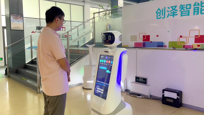 創澤智能消毒機器人和智能大屏機器人等多款機器人亮相蘭洽會,彰顯了創澤AI技術實力與場景深耕能力