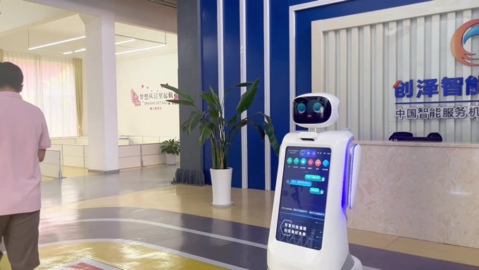 創澤智能消毒機器人和智能大屏機器人等多款機器人亮相蘭洽會,彰顯了創澤AI技術實力與場景深耕能力