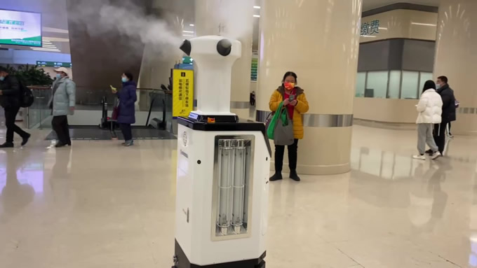 消毒機器人什么場合作用大,大型公共場所使用消毒機器人進行消毒
