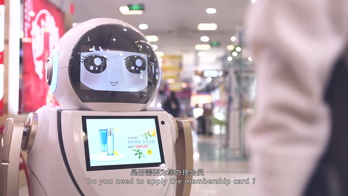 會(huì)說(shuō)英文的迎賓機(jī)器人