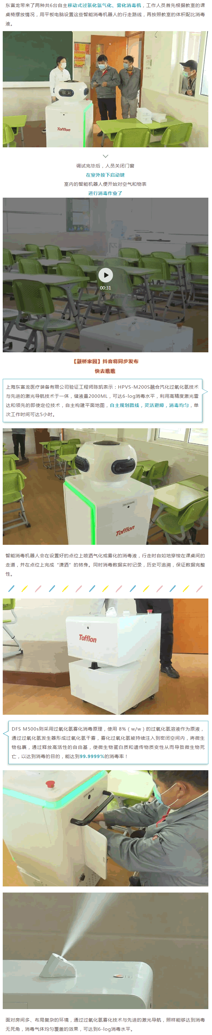 近日,顓小君在顓橋中學看到東富龍派出了曾經馳援湖北抗疫的智能消毒機器人為學校提供消毒服務,為學校及廣大學生提供安全的學習環境!
