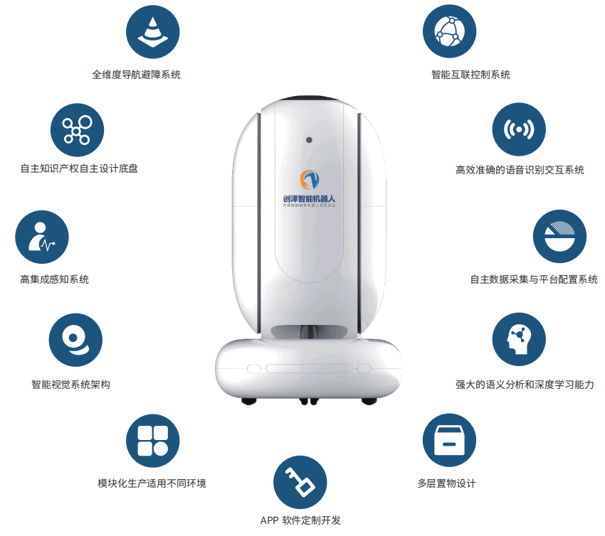 由公司自主研發設計,基于人工智能(AI)和機器學習(ML)技術L域的突破,經過精細調研與充分論證, 確保機器人控制智能、性能穩定,結合客戶需求,通過不斷地創新研發,重新定義送餐機器人。簡潔大方的設 計,取放飯菜更加便捷,置物托盤空間更大,一次能夠運輸更多物品;激光雷達導航,無人駕駛自動避障,無需鋪設導軌,能夠在復雜的環境中進行迅速移動,快速完成配送任務。