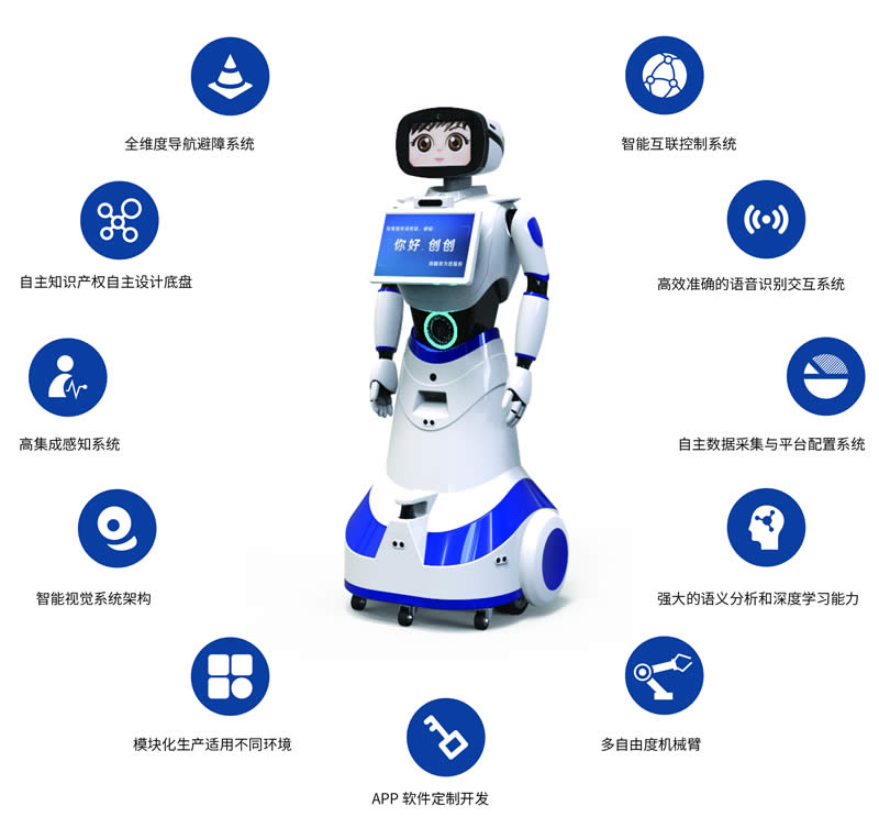 基于人工智能(Al)和機(jī)器學(xué)習(xí)(ML)技術(shù)L域的突破,經(jīng)過(guò)精細(xì)調(diào)研與充分論證,確保機(jī)器人控制智能、性能穩(wěn)定,通過(guò)不斷地創(chuàng)新研發(fā),重新定義服務(wù)機(jī)器人。智能商用服務(wù)機(jī)器人"創(chuàng)創(chuàng)" 集視覺(jué)、聽(tīng)覺(jué)、觸覺(jué)、自由行走干—體。 可廠(chǎng)泛用于政符、金G、展館展廠(chǎng)工、教育、醫(yī)療、圖書(shū)館、商招、昌等L域。滿(mǎn)足客廣多元化需求。 "創(chuàng)創(chuàng)" 率先實(shí)現(xiàn)了把機(jī)器人的"大腦"和"小腦"完全向客戶(hù)開(kāi)放,由止此可以迅速學(xué)習(xí)各個(gè)行業(yè)的專(zhuān)業(yè)知識(shí)并成為各個(gè)行業(yè)的專(zhuān)家。"創(chuàng)創(chuàng)"是您的小助手,好朋友!