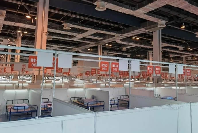 上海疫情防控形勢嚴峻,鈦米機器人迅速響應、連夜部署,用時1天在世博中心方艙醫院內部署完成28臺醫用G水平消毒機器人;與此同時,鈦米機器人CVM團隊在上海大規模的、共有1.5萬張床位的新國際博覽中心方艙醫院,率先部署15臺醫用G水平消毒機器人,為整個N5收治區提供環境安全保障。