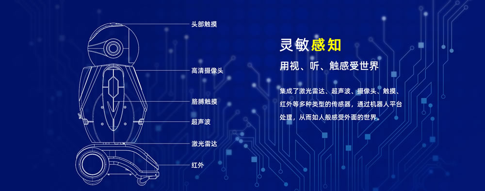 展廳講解機(jī)器人凝聚了國內(nèi)外D人工智能團(tuán)隊先進(jìn)的科研成果,釆用擬人化設(shè)計, 是擁有視覺、觸覺、聽覺的個性化情感智能服務(wù)機(jī)器人,通過了機(jī)器人檢 測與評定中心EMC和安全雙資質(zhì)認(rèn)證,是國內(nèi)早通過該雙資質(zhì)認(rèn)證的四款 機(jī)器人之一,獲PICC千萬元質(zhì)量承保,斬獲了有“科技界諾貝爾獎”之稱的CES 創(chuàng)新獎。