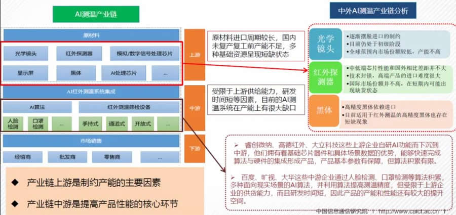 AI測溫系統產能不足,核心部件較國外存在差距。