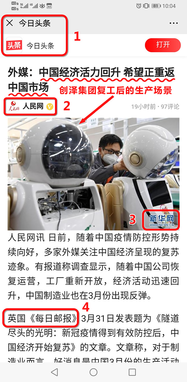 英國《每日郵報》3月31日發(fā)表題為《隧道盡頭的光明:新G疫情得到有效防控后,中國經(jīng)濟開始復(fù)蘇》的文章。文章稱,對于制造業(yè)而言,好消息是中國3月份的生產(chǎn)活動和新訂單升至50%以上。同時,服務(wù)業(yè)也有所反彈。