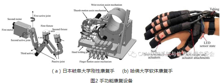 腦卒中、意外事故和老齡化等造成的腦損傷患者數(shù)量大幅度增加,由腦損傷引起的手運動功能障礙直接影響患者的生活質量。傳統(tǒng)的治療手段主要依靠康復醫(yī)師輔助患者關節(jié)活動度和肌力訓練,但其訓練效果受醫(yī)生經驗和業(yè)務水平及訓練時間等因素的影響。因此有很多研究者研發(fā)了相關的康復訓練設備輔助患者訓練以重新獲取肢體的運動技能[1]。