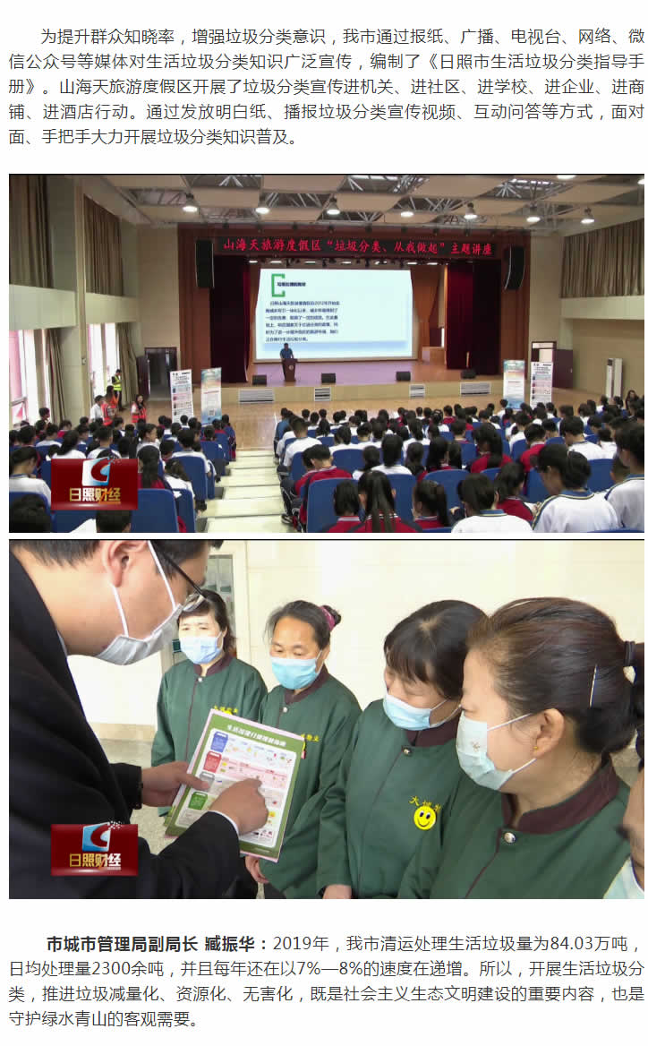 垃圾分類是實現垃圾減量化、資源化、無害化的基礎工作,也是保護環境,推進生態文明建設的重要舉措。今年3月,日照市政府印發了《日照市城市生活垃圾分類工作實施方案》,明確工作目標。