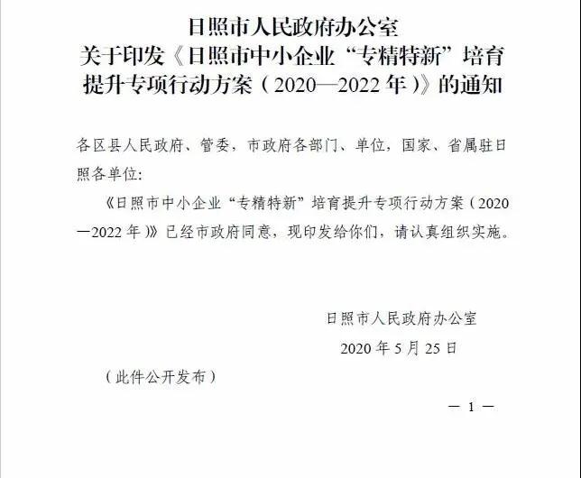 全文: 日照市中小企業“專精特新”培育提升專項行動方案(2020—2022年)