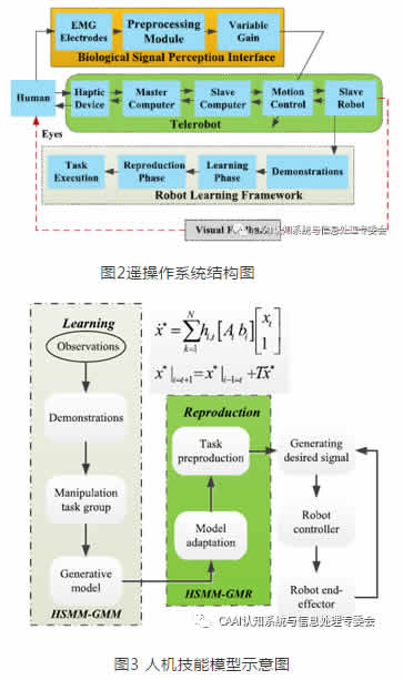 本文提出了一種新型的觸覺肌電感知機制和基于隱半馬爾科夫模型-G斯混合理論的機器人學習框架。操作者通過調節自身的肌肉活性來應對外界環境的變化,同時觀察和記錄人機協作過程中的肌肉活動情況。利用采集的肌電信號和提出的任務學習框架,遙操作機器人系統可以自然地與外界環境進行交互、編碼人機協作任務和生成任務模型,從而提升系統的類人化操作行為和智能化程度。