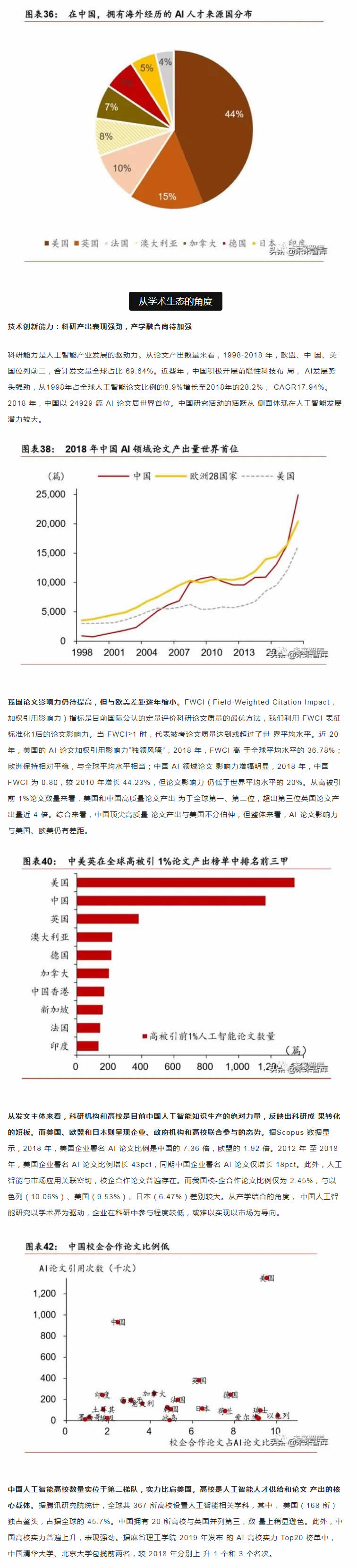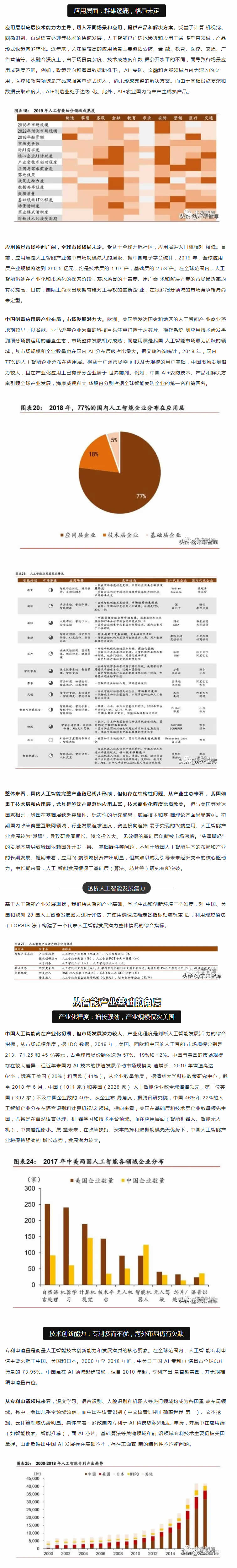 從中短期看,技術(shù)優(yōu)化、落地場景的開拓和滲透是是主要的增長點;從長期看,智能生 態(tài)體系建設(shè)才是彎道超車的必由之路。人工智能產(chǎn)業(yè)的核心競爭力在于生態(tài)體系的建設(shè), 包括大數(shù)據(jù)、算法理論、底層技術(shù)、應(yīng)用生態(tài)、人才儲備等層面。而我國人工智能產(chǎn)業(yè)生 態(tài)和基礎(chǔ)設(shè)施建設(shè)正處于探索期,如何實現(xiàn)核心技術(shù)的突破和拓寬人工智能技術(shù)與社會經(jīng) 濟融合場景著力點在于人才儲備和持續(xù)的研發(fā)投入。從人才的角度,收窄技術(shù)差距的根本 在于優(yōu)化人的知識結(jié)構(gòu)和能力。當(dāng)前政策應(yīng)側(cè)重建立人才培養(yǎng)體系,為人工智能打造人才 資源池,尤其是在基礎(chǔ)學(xué)科L域突破人才瓶頸。同時,打破“唯數(shù)量論”的科研評價和考 核體系,改變?nèi)瞬偶顧C制勢在必行。我國人工智能專利申請和科研產(chǎn)出數(shù)量L先, 但質(zhì)量堪憂。唯有從源頭改變評價機制,才能扭轉(zhuǎn)“量多而質(zhì)優(yōu)”的問題。從研發(fā)的角度, 企業(yè)技術(shù)優(yōu)化和創(chuàng)新能力是解決產(chǎn)業(yè)痛點的關(guān)鍵。基礎(chǔ)研究的投入周期長、不確定性大、 和風(fēng)險G特點決定了其難以短期內(nèi)獲得投資回報,但基礎(chǔ)L域的突破將為經(jīng)濟帶來長期和 廣泛的溢出效應(yīng),因此,國內(nèi)更應(yīng)關(guān)注底層技術(shù)的研發(fā)投入,扭轉(zhuǎn)傳統(tǒng)技術(shù)路徑,顛覆核 心技術(shù)受制于人的被動局面。此外,人工智能在賦能機器模擬人類進(jìn)行決策的同時產(chǎn)生的 倫理道德、隱私保護(hù)和社會安全問題值得關(guān)注。由于法律法規(guī)存在滯后性,尚無法對人工 智能技術(shù)進(jìn)行有效監(jiān)管。我國應(yīng)加快人工智能倫理研究,及早識別人工智能治理風(fēng)險。