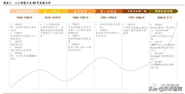 人工智能(Artificial Intelligence,AI)是利用機器學習和數據分析方法賦予機器模擬、延 申和拓展類人的智能的能力,本質上是對人類思維過程的模擬。AI 概念始于 1956 年 的達特茅斯會議,受限于算法和算力的不成熟,未能實現大規模的應用和推廣。近年來, 在大數據、算法和計算機能力三大要素的共同驅動下,人工智能進入G速發展階段。據中 國電子學會預測,2022人工智能市場將達到1630億元,2018-2022年CAGR達31%。人工智能賦能實體經濟,為生產和生活帶來革命性的轉變。人工智能作為新一輪產業變革 的核心力量,將重塑生產、分配、交換和消費等經濟活動各環節,催生新業務、新模式和 新產品。從衣食住行到醫療教育,人工智能技術在社會經濟各個L域深度融合和落地應用。同時,人工智能具有強大的經濟輻射效益,為經濟發展提供強勁的引擎。據埃森哲預測, 2035 年,人工智能將推動中國勞動生產率提G 27%,經濟總增加值提升 7.1 萬億美元。