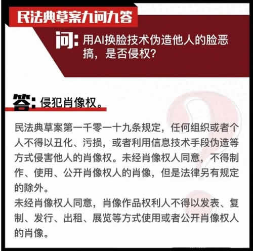 有分析人士指出,《民法典》正式實行后,除了法律另有規定的情況,如果被換臉的人沒有同意,而你用了P圖、拍攝、鬼畜、繪畫、DeepFakes等各種方式處理