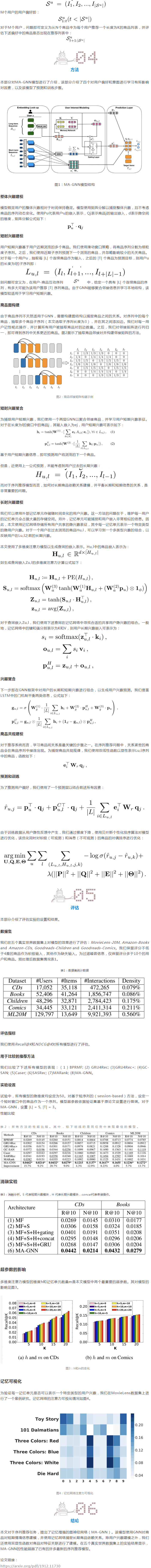 用戶-商品交互的時間順序可以揭示出推薦系統中用戶行為隨時間演進的序列性特征。用戶與之交互的商品可能受到用戶曾經接觸的商品的影響。但是,用戶和商品數量的大量增加,使得序列推薦系統仍然面臨很多重要問題:(1)對短時用戶興趣建模的困難;(2)捕捉用戶長期興趣的困難;(3)對商品共現模式的建模效率較低。為了應對這些挑戰(zhàn),本文提出了一個記憶增強的圖神經網絡(memory augmented graph neural network, MA-GNN),以捕捉用戶的長期和短期興趣。