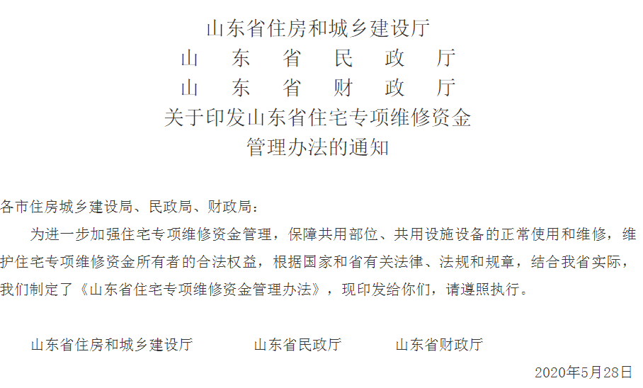 D一條 為了加強對住宅專項維修資金(以下簡稱維修資金)的管理,保障住宅共用部位、共用設施設備的正常使用和維修,維護維修資金所有者的合法權益,根據《中華人民共和國物權法》《物業管理條例》《山東省物業管理條例》《住宅專項維修資金管理辦法》等法律、法規和規章的規定,結合本省實際,制定本辦法。