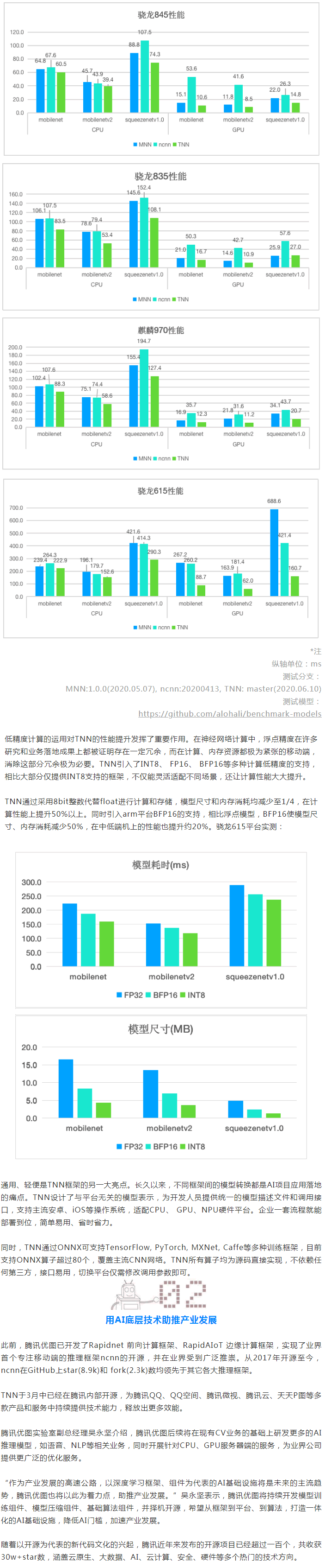 6月10日,騰訊優(yōu)圖實(shí)驗(yàn)室宣布正式開源新一代移動端深度學(xué)習(xí)推理框架TNN,通過底層技術(shù)優(yōu)化實(shí)現(xiàn)在多個(gè)不同平臺的輕量部署落地,性能優(yōu)異、簡單易用。騰訊方面稱,基于TNN,開發(fā)者能夠輕松將深度學(xué)習(xí)算法移植到手機(jī)端G效的執(zhí)行,開發(fā)出人工智能 App,真正將 AI 帶到指尖。