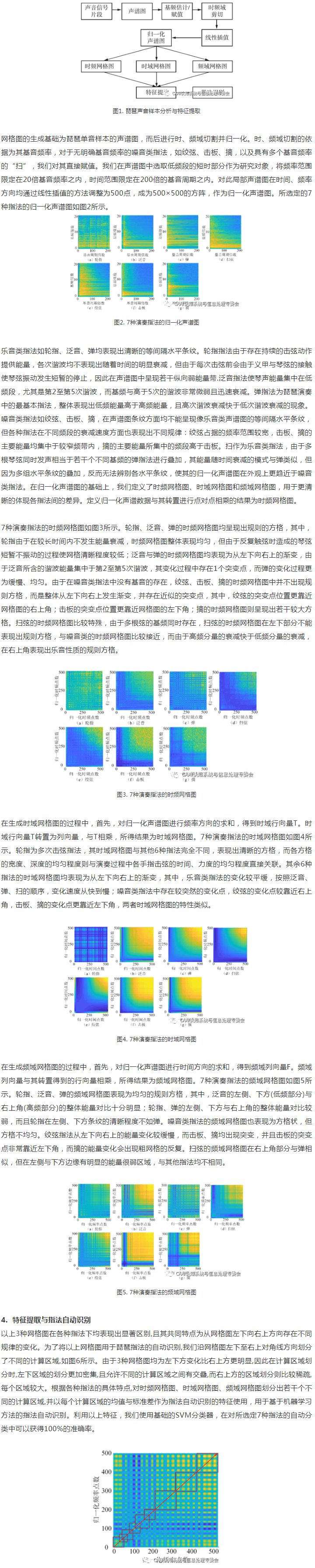 在人工智能方法飛速發(fā)展的今天,對(duì)樂器的演奏指法的自動(dòng)分析在樂曲的檢索、鑒賞引導(dǎo)、演奏輔助學(xué)習(xí)等方面均具有重要意義。琵琶作為一種中國(guó)傳統(tǒng)樂器,對(duì)其進(jìn)行自動(dòng)分析的已有工作大多集中于對(duì)琵琶聲音的算法合成方面的探討[1-3],而在指法自動(dòng)識(shí)別、分類方面涉及很少。在我們的工作中,提出了對(duì)琵琶不同指法所產(chǎn)生的聲音具有明顯區(qū)分度的網(wǎng)格圖特征,用于對(duì)幾種典型的琵琶演奏指法進(jìn)行基于機(jī)器學(xué)習(xí)的自動(dòng)識(shí)別。