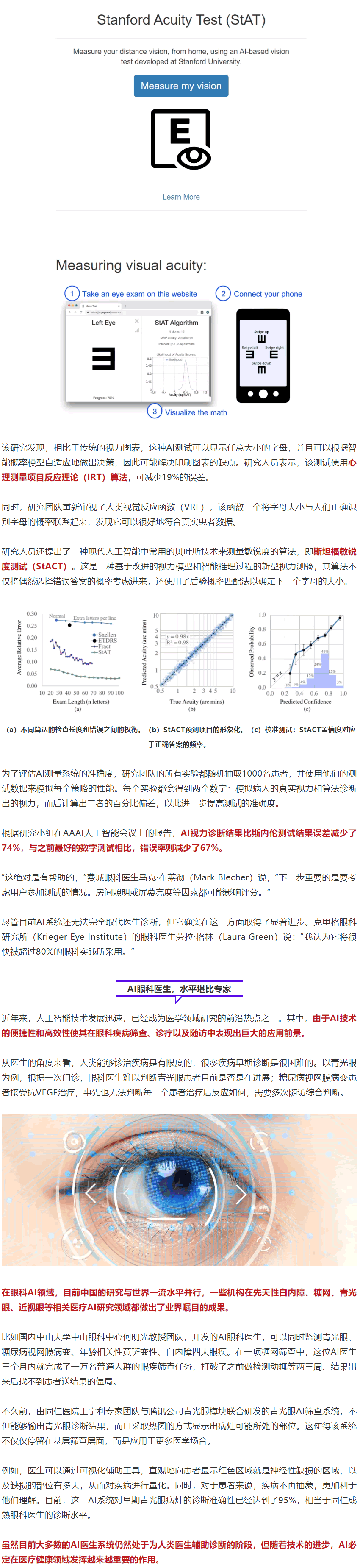 近日,斯坦福大學(xué)(Stanford University)計算機科學(xué)家克里斯·皮奇(Chris Piech)及其同事開發(fā)了一種由人工智能(AI)推動的在線視力測試系統(tǒng),該系統(tǒng)僅需進行四步操作,即可完成視力測試,且結(jié)果十分準(zhǔn)確。