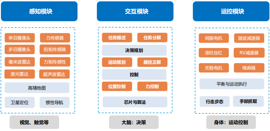 人形機(jī)器人構(gòu)成:三大模塊,軟件與硬件交互