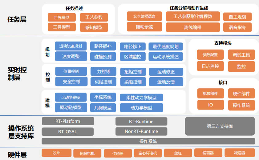 人形機器人本質是AI系統落地物理世界的佳載體,算法是核心,需與硬件匹配。機器人的輸出包含了虛擬 與物理兩種能力。雖然人形機器人從本體硬件上看,存在抗壓硬度與靈敏度不足的問題,但更核心問題在于 是算法對運動能力的控制,包括本體平衡、行走的步態、手部抓取等規劃與控制。這需要成熟的感知系統基 礎、強大的算法分解任務和規劃動作、大模型不斷仿真訓練以及強的算力支撐。同時要求,算法與硬件相 匹配,這要求機器人企業需自研算法,并持續更新迭代。