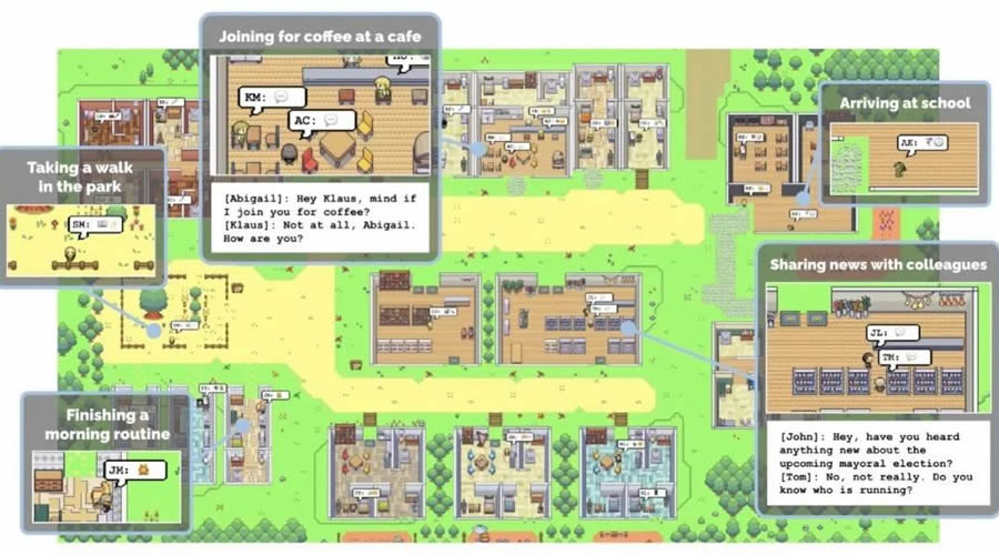 論文介紹了一種新的計算機(jī)模擬軟件,稱為“生成代理”,可以模擬逼真的人類行為。這些生成代理可以像真實人一樣進(jìn)行日常生活行為,例如起床做早餐、去上班、形成意見、互相注意到并開始對話等。為了實現(xiàn)生成代理,論文提出了一種架構(gòu),該架構(gòu)基于大型語言模型,可以存儲生成代理的自然語言體驗記錄,并將這些記憶隨著時間的推移合成為更G層次的反思,然后動態(tài)檢索這些反思以規(guī)劃行為。
