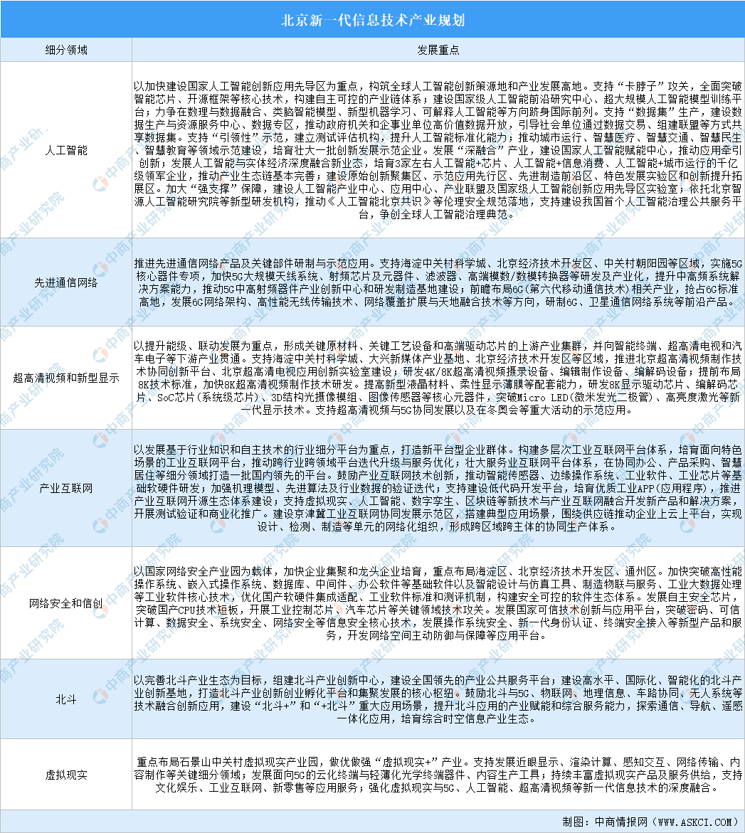 新一代信息技術(shù):以聚焦前沿、促進(jìn)融合為重點(diǎn),突出G端L域、關(guān)鍵環(huán)節(jié),扶持壯大一批出色品牌企業(yè)和特色產(chǎn)業(yè)集群,重點(diǎn)布局海淀區(qū)、朝陽(yáng)區(qū)、北京經(jīng)濟(jì)技術(shù)開發(fā)區(qū),力爭(zhēng)到2025年新一代信息技術(shù)產(chǎn)業(yè)實(shí)現(xiàn)營(yíng)業(yè)收入2.5萬(wàn)億元。