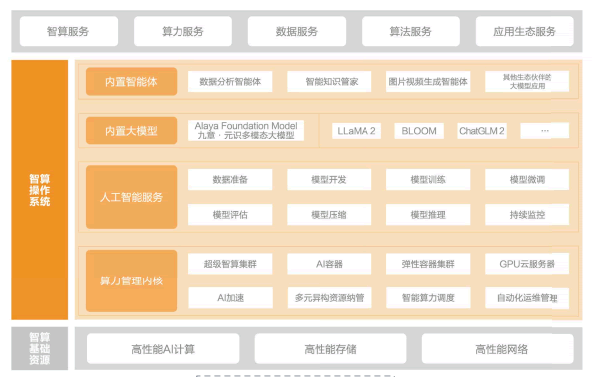 Alaya NeW智算操作系統(以下簡稱:Alaya NeW),由九章云JDataCanvas 自主研發,可有效管理、調度各種算力資源,提供智算服務,落地各類智算應用。作為智算中心的“中樞神經”,Alaya NeW突破異構算力適配、異構算力調度等關鍵技術,實現了包括算力統籌與智能調度的底層硬件異構性兼容;簡單易用且以集群為優先的策略,原生適合AIG性能計算,原生支持AI大模型+小模型的低門檻構建、訓練和推理;并支持與通用大模型、行業大模型及各類大模型應用組合疊加,實現一體化、開放化、標準化的AI模型服務。