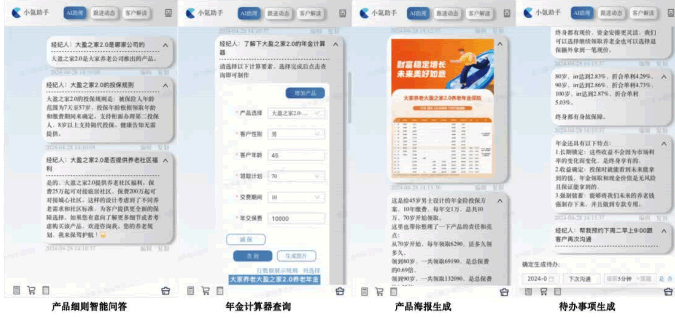 保險(xiǎn)AI大模型助手在保險(xiǎn)代理人與客戶溝通中的廣泛應(yīng)用,提供實(shí)時(shí)問(wèn)答支持和資料查詢功能,簡(jiǎn)化了代理人查詢產(chǎn)品資料的流程,減少了溝通次數(shù),提升了客戶服務(wù)效率和質(zhì)量,增強(qiáng)了客戶體驗(yàn)和滿意度。這些創(chuàng)新技術(shù)和功能的實(shí)施,顯著提升了代理人的工作效率和專業(yè)能力,有效支持了保險(xiǎn)企業(yè)在競(jìng)爭(zhēng)激烈的市場(chǎng)中保持競(jìng)爭(zhēng)優(yōu)勢(shì)。