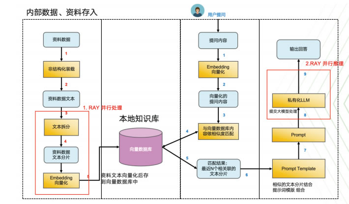 核心層:提供 Embedding Ray Service 和QA Ray Service 兩大服務,都基于Ray的分布式計算框架,多組服務并行。