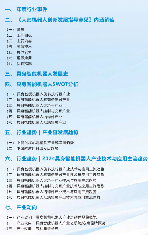 附件:2024 AI 大模型推動新一代具身智能機(jī)器人產(chǎn)業(yè)發(fā)展藍(lán)皮書-具身智能機(jī)器人產(chǎn)業(yè)主要研發(fā)成果、產(chǎn)品應(yīng)用特點(diǎn)進(jìn)行了詳細(xì)解析