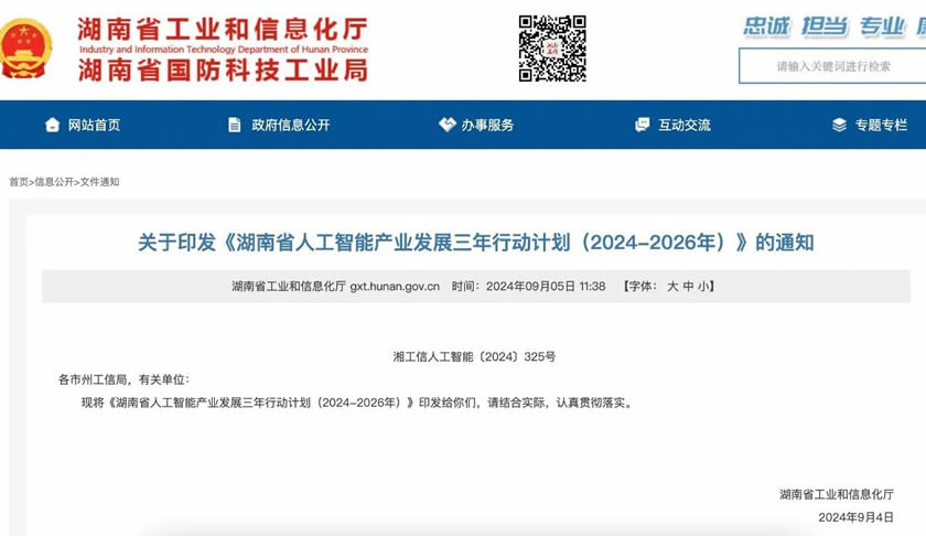 關(guān)于印發(fā)《湖南省人工智能產(chǎn)業(yè)發(fā)展三年行動計劃(2024-2026年)》的通知