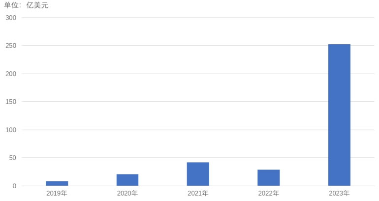 大模型L域拉動人工智能投融資金額上揚。2024 年上半年, 人工智能投融資金額達316 億美元,同比上升 84%。在融 資緊縮的背景下,受益于大模型發展和企業融資帶動,人工智能L 域融資占全行業融資比例持續上升,從 2022 年的 4.5%上升至 2024 年上半年的 12.1%。2023 年,生成式人工智能投融資規模達 252 億 美元,約為 2022 年的 9 倍,占 2023 年所有人工智能相關投資的約四分之一。2024 年上半年,金額大的 10 筆融資事件中有 6 筆為大模型企業融資,金額總計達 135 億美元。
