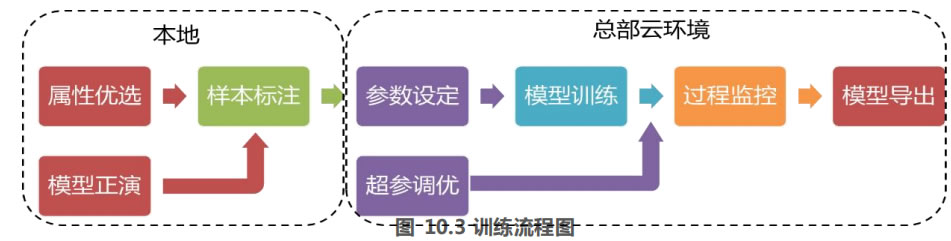 a)訓練流程。鑒于地震數(shù)據(jù)量的海量規(guī)模,場景樣本標注在本地進行。依據(jù)專家經(jīng)驗優(yōu)選地震屬性,多資料、多數(shù)據(jù)聯(lián)合開展專家樣本標注。同時輔以地震正演制作訓練樣本,來克服樣本的不均衡和數(shù)量不足問題。另外依托總部云,采用云邊部署架構(gòu),借助平臺算力資源進行模型訓練。并輔以超參調(diào)優(yōu)技術(shù),指示“進化路徑“,提G出色模型訓練效率,具體流程見下圖。