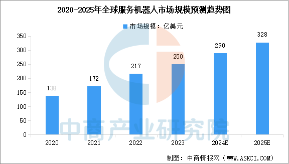 隨著人口老齡化的加劇,老年人對醫療、康復、陪伴等服務的需求日益增加,為服務機器人提供了廣闊的市場空間。2023年服務機器人市場規模達到約250億美元,比上年增長15.21%。中商產業研究院分析師預測,2024年服務機器人市場規模將達到290億美元,2025年達到328億美元。