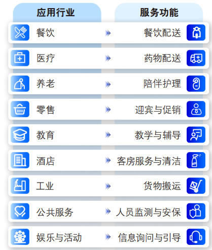 伴隨著技術(shù)的進(jìn)步和市場需求的不斷提升 ,服 務(wù)機(jī)器人的應(yīng)用邊界正日益拓寬 ,從Z初的單 一行業(yè)擴(kuò)展到多個領(lǐng)域 ,涉及餐飲、零售、酒 店、醫(yī)療、養(yǎng)老、娛樂體育、工業(yè)、教育和公 共服務(wù)等。服務(wù)機(jī)器人需要再跨場景中完成復(fù) 合型任務(wù),從專用邁向通用成為必然趨勢。