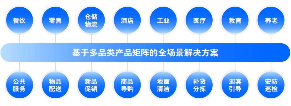 隨著服務(wù)機(jī)器人在餐飲、零售、倉儲(chǔ)物流、酒 店、工業(yè)、醫(yī)療、教育、養(yǎng)老、公共服務(wù)等各行 業(yè)中加速應(yīng)用滲透,服務(wù)邊界持續(xù)拓展深化,與 此同時(shí),在差異化的場(chǎng)景中仍然存在著搬運(yùn)、清 潔、迎賓交互等多種共性的復(fù)合需求。