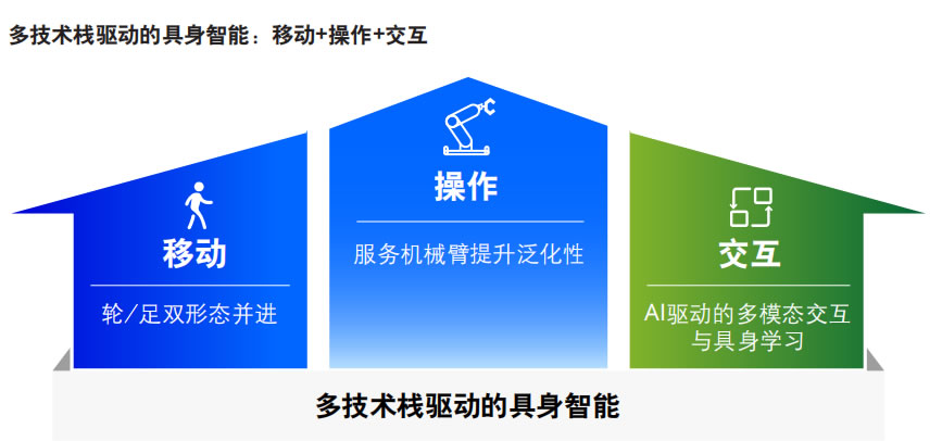 隨著行業(yè)發(fā)展進(jìn)入深水區(qū) ,單一的技術(shù)路線已 無(wú)法滿足市場(chǎng)需求。進(jìn)入行業(yè)下半場(chǎng)需要以更 廣闊的視角審視產(chǎn)業(yè)發(fā)展方向。在構(gòu)建全棧式 智能生態(tài)的過(guò)程中 ,多技術(shù)棧的協(xié)同發(fā)展已成 為必然選擇。從技術(shù)演進(jìn)的角度來(lái)看 ,當(dāng)前服 務(wù)機(jī)器人行業(yè)正處于關(guān)鍵轉(zhuǎn)型期——從單一的自主移動(dòng)能力向集移動(dòng)、操作、交互于一體的 多技術(shù)棧邁進(jìn)。可以預(yù)見(jiàn) ,在多技術(shù)棧的驅(qū)動(dòng)下 ,以多模態(tài)感知、 自主決策、靈巧操作為核心特征的具身智能 ,將成為推動(dòng)全棧式智能生態(tài)發(fā)展的核心驅(qū)動(dòng)力。