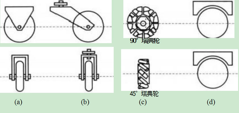 按照有無推進力功能,車輪可以分為驅動輪和從動輪兩大類。根據單個車輪 的自由度,車輪可劃分為一般車輪、球形輪、全方位輪等幾類。車輪與移動地面之 間的接觸區分為滑動接觸、滾動接觸兩種。
