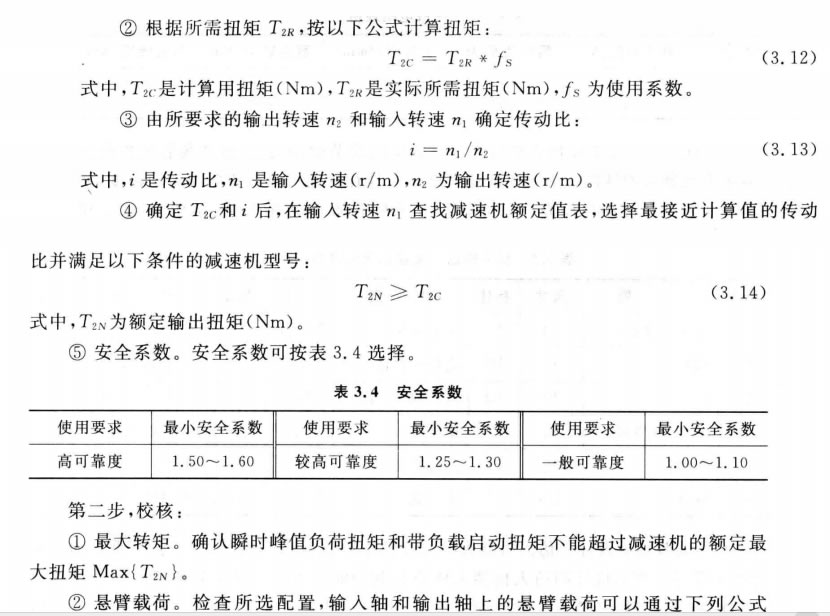 (4)精密行星減速機(jī)選型及其問題。選用精密行星減速機(jī)應(yīng)考慮其結(jié)構(gòu)類型、安裝 形式、承載能力、輸出轉(zhuǎn)速、工作條件等因素。減速機(jī)的承載能力是在額定轉(zhuǎn)速下,每天 工作10小時(shí)和啟動(dòng)數(shù)少于10time/h 及平穩(wěn)無沖擊的條件下得出的,所以應(yīng)按以下步驟 進(jìn)行選型[97]。