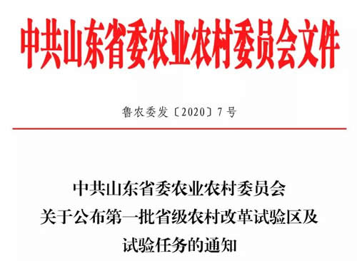 近日,省委農業農村委員會印發《關于公布D一批省級農村改革試驗區及試驗任務的通知》(魯農委發〔2020〕7號)