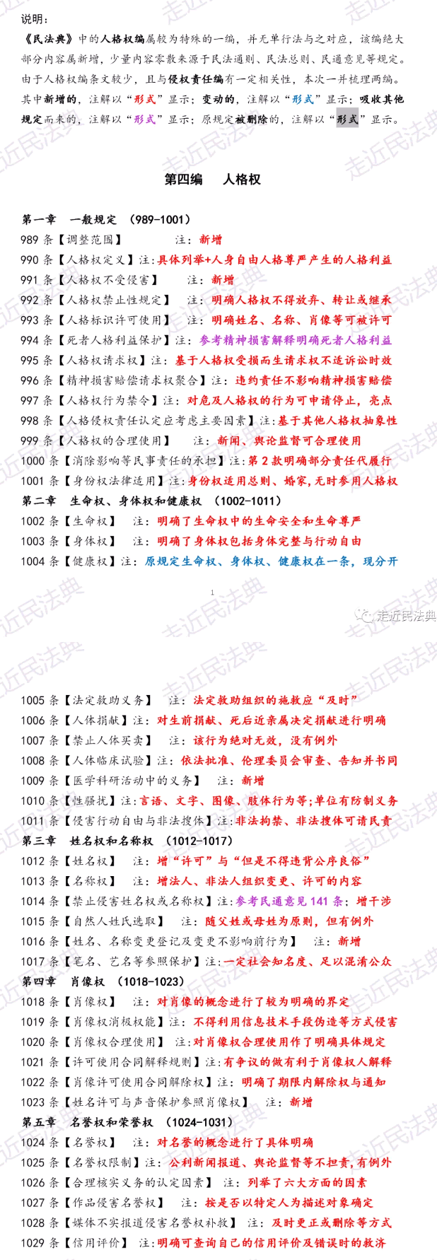 一方面在于人格權編(51條)、侵權責任編(95條)條文數量不多,另一方面在于人格權編與侵權責任編本身也屬關聯性較強的兩編。為此,我們一并梳理、推送。兩編條文數量雖不多,但重要新增與調整完善卻不少,尤其單獨成編的人格權編,新增內容較多,引發廣泛關注