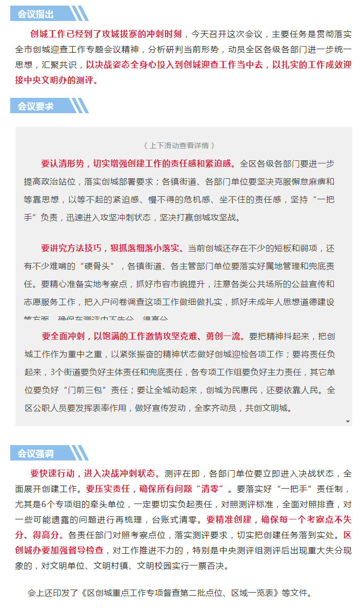 8月26日下午,東港區召開創城迎查工作專題會議,進一步學習貫徹落實全市創城迎查工作專題會議精神,動員各級各部門以決戰決勝、沖鋒沖刺的姿態,多面查找不足,盡快補齊短板,以優異成績迎接文明辦測評。
