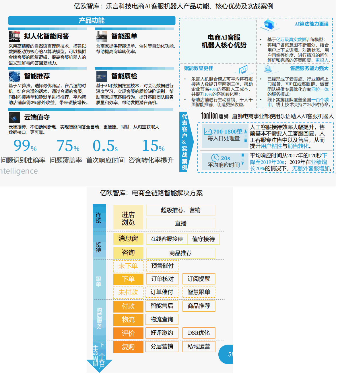 在電商L域,樂言科技自主研發了面向淘寶、天貓等平臺的AI客服機器人“樂語助人” ,具備G準確的語言理解能力,可模擬金牌客