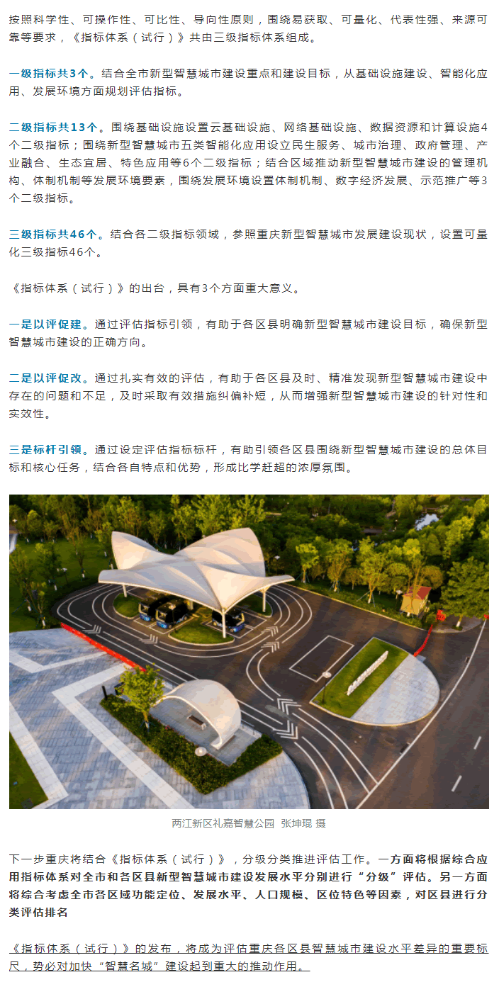 近日,重慶市新型智慧城市建設L導小組辦公室發布《重慶市新型智慧城市評估指標體系(試行)》(以下簡稱《指標體系(試行)》)。