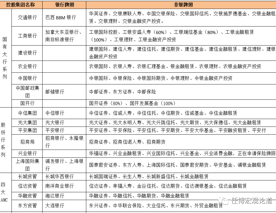 我們統計了77家金融控股集團牌照擁有情況。整體來看,可以將我國的金融控股集團分為四大類,分別為金融體系下的金控集團17家、大型央企背景下的金控集團7家、地方國企背景下的金控集團17家以及其它系列36家。
